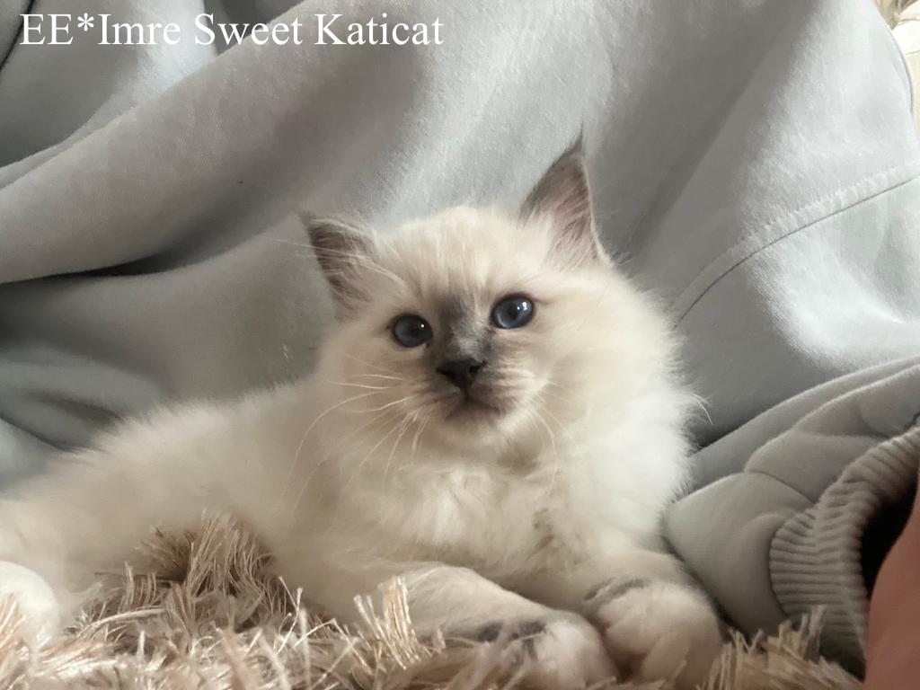 Augustikuu ärevamad hetked möödusid kui silmapilk ja ilmavalgust nägi I2 pesakond. Dulcinea on selline emane kass, kes on Sweet Katicat kasvandusega kaasomandis. Dulcinea sai oma pesakonna Kaja ja Tarmo kodus. Tema poegimist assisteeris juhuse tahtel hoopiski Tarmo! Hiljem ütles ta naljatades, et peale sellist kogemust tekkis kassipoegade suhtes tugev isainstinkt. Esimestel päevadel selgus kohe, et Dulcinea on väga hea ja hoolitsev ema. Kaja ja Tarmo soov oligi kassipoegade kasvatamise rõõmu nautida. Nad said ka 24/7 minu poolt lahkelt pakutavat abi (nõustamist ja juhendamist). Hoidsime pidevalt kontakti ja koos sai jagatud rõõme ning muresid. Pesakond sai ka kõik vajalikud dokumendid, kiibid ning vaktsiinid nagu Sweet Katicat kasvandikud ikka. Kassipoegade isa on meie suure B2 pesakonna kasvandik, Bruce – kes ühtlasi 2021 Birmade Erinäituse Parim Isane! Loomulikult sai ainuke kena preili ka kasvandusele jäetud. Eks aeg näitab kuidas Iti areng toimub. Elab ta Angelina juures.